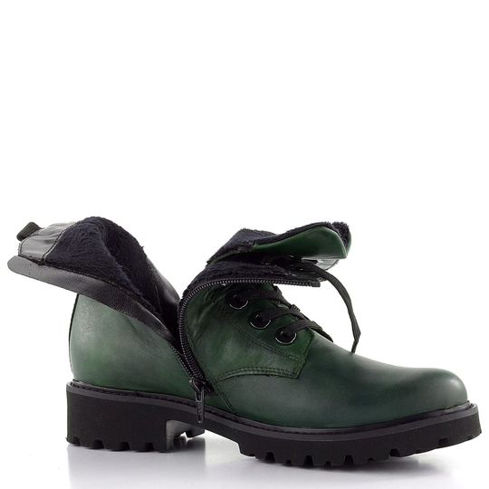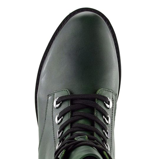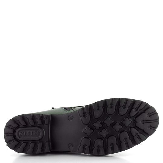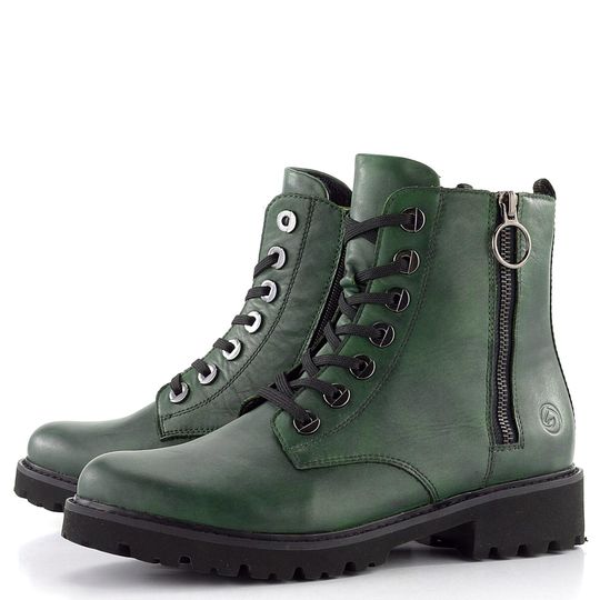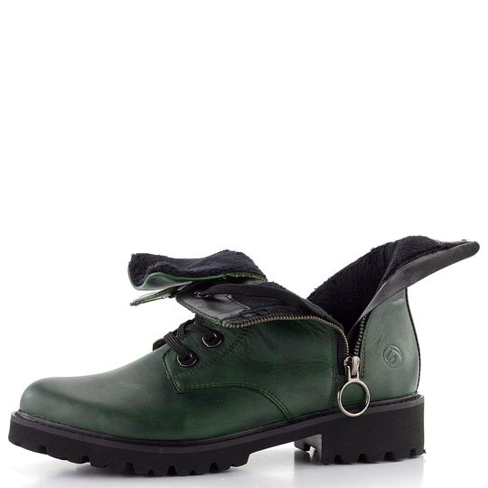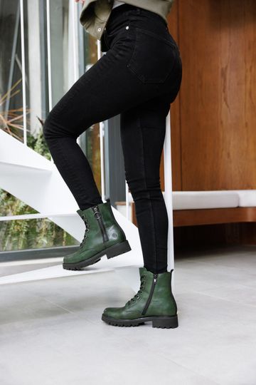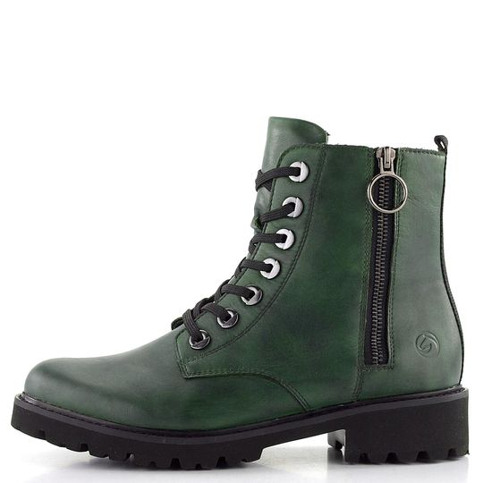 Stylový dámský zimní kotník v elegantní tmavě zelené barvě od značky Remonte by Rieker. Tento model zaujme svým hladkým koženým svrškem s jemným stínováním a praktickým šněrováním s kovovými očky. Na obou stranách boty jsou funkční zipy, což zajišťuje snadné obouvání. Vnitřní podšívka je z hebké vlasové textilie, která udrží nohy v teple, zatímco měkká, vyjímatelná stélka potažená filcem poskytuje maximální komfort. Lehká syntetická podešev s hrubým vzorkem a širokým podpatkem (4 cm) zajišťuje stabilitu a pohodlí při každodenním nošení. Výška kotníku je 14 cm (bez podpatku). Tento model je ideální volbou pro podzimní a zimní sezónu, kdy chcete spojit styl s funkčností a komfortem.