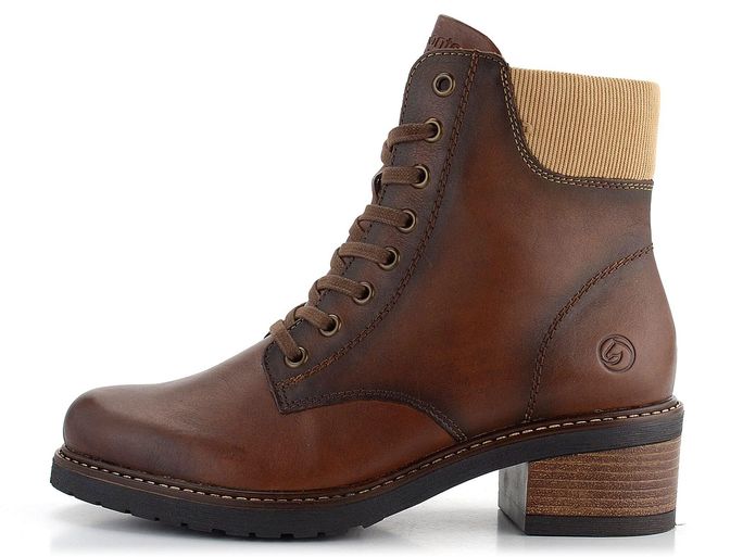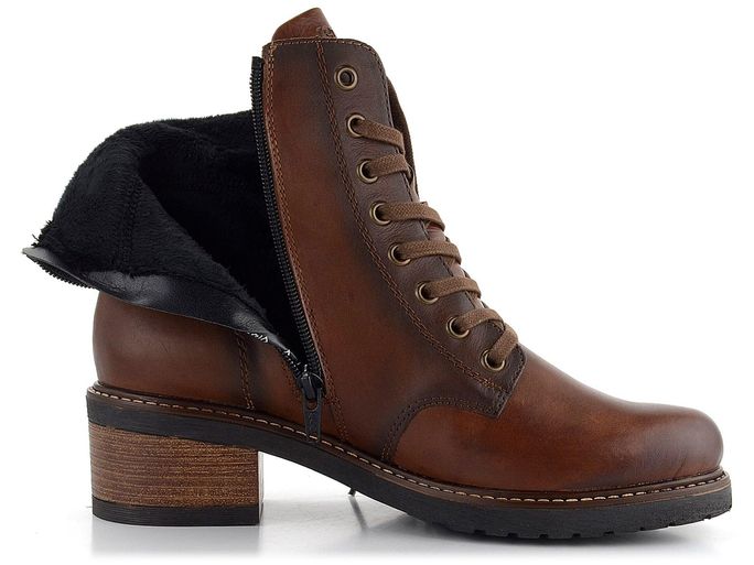 Stylový kotník v kaštanově hnědém odstínu od značky Remonte je ideální volbou pro podzimní a zimní sezónu. Tento model nabízí pohodlný střih s pěkným tvarem kulaté špičky. Svršek je vyroben z hladké kůže, která je doplněna o stínování podél švů, což dodává botám elegantní vzhled. Silně polstrovaný textilní kotníkový lem v béžovém odstínu zajišťuje maximální komfort. Šněrování s kovovými očky umožňuje regulaci šíře obuvi, zatímco zip na vnitřní straně usnadňuje obutí. Teplá podšívka z hebké vlasové textilie a měkká, vyjímatelná stélka potažená textilií přispívají k celkovému pohodlí. Boty mají bytelnou podešev s monolitickým podpatkem o výšce 5 cm a výška kotníku je 13 cm (bez podpatku). Tento model je skvělou volbou pro ty, kteří hledají kvalitní a stylovou obuv na každodenní nošení.