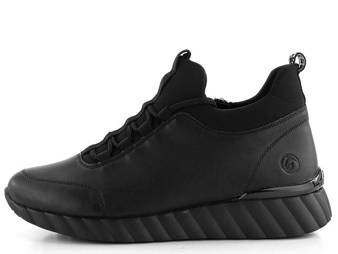 Dámské nízké kotníkové boty od značky Remonte by Rieker jsou ideální volbou pro podzimní a zimní měsíce. Tyto vyšší zateplené polobotky kombinují hladkou kůži a softshellovou textilii, což zajišťuje nejen elegantní vzhled, ale i odolnost proti nepříznivým vlivům počasí. Černá barva je univerzální a snadno kombinovatelná s různými outfity. Díky zvýšenému softshellovému lemu a klasickému šněrování doplněnému o vnitřní zip je obouvání snadné a pohodlné. Mírně teplá podšívka z hebkého vlasu a filcová stélka s termoizolační fólií poskytují komfort a tepelnou izolaci. Lehká syntetická podešev s mírným klínkem a lesklým doplňkem na patě dodává botám moderní vzhled. Tyto boty jsou vyráběny lepeným způsobem, což zaručuje jejich trvanlivost a pevnost. Vyberte si kvalitu a komfort s botami značky Remonte.