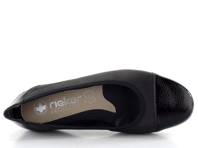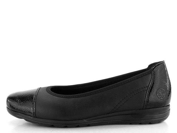 Vyzkoušejte pohodlí a eleganci s dámskými balerínami značky Rieker v černé barvě. Tyto baleríny kombinují hladkou kůži s mačkanou lakovanou syntetikou na špičce a patě, což jim dodává jedinečný vzhled. Podšívka z broušené textilie podložená slabým molitanem zajišťuje měkkost a komfort při nošení. Extra měkká kožená stélka a zpevněný vnitřní opatek ze syntetiky poskytují optimální podporu. Pružná paspulka po obvodu zaručuje, že baleríny skvěle padnou. Ohebná latexová podešev s hrubším vzorkem zajistí bezpečný krok. Tyto baleríny jsou ideální volbou pro podzimní a zimní sezónu, kdy je důležitá nejen elegance, ale i pohodlí.
