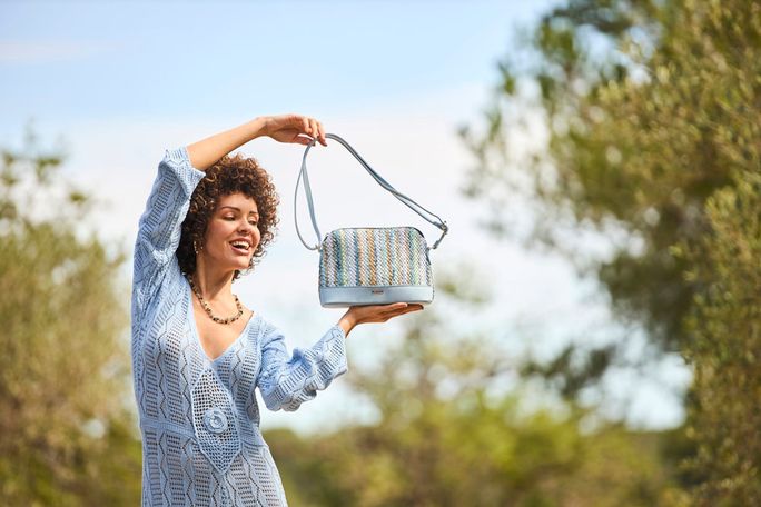 Dámská crossbody kabelka v praktickém střihu laděná do modrých tónů.