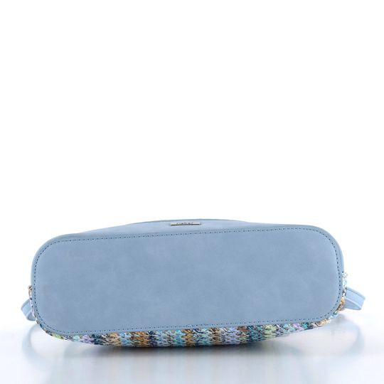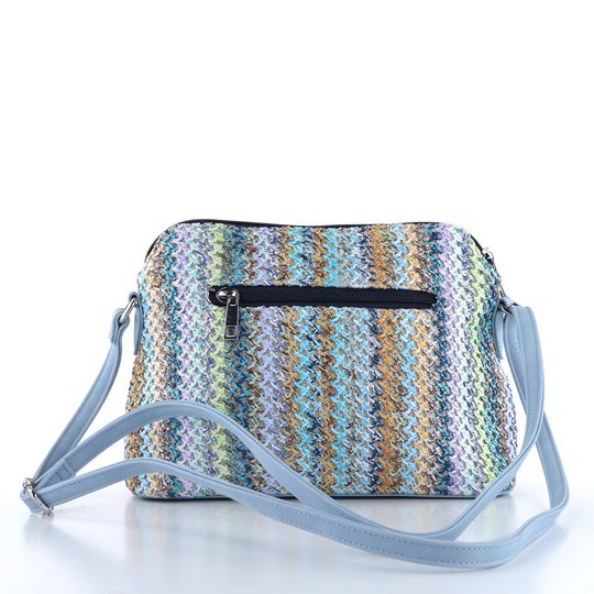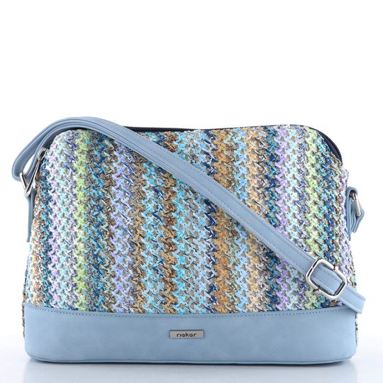 Dámská crossbody kabelka od značky Rieker je perfektní volbou pro každodenní použití. Její jednoduchý střih a ideální velikost umožňují snadné uschování všech nezbytností. Kabelka je vyrobena ze splétaného umělého lýka a doplněna syntetickými prvky, což zaručuje trvanlivost a styl. Základní světle modrá barva je obohacena o pruhovaný vzor v odstínech světle zelené, fialové, béžové a hnědé. Praktické detaily zahrnují stříbrné kování, zadní zipovou kapsičku a vnitřní uspořádání s otevřenými a zipovými kapsami. Díky ramennímu pásku s délkovou regulací lze kabelku nosit klasicky i jako crossbody. Rozměry: šířka 26 cm, výška 18 cm, hloubka dna 8 cm.