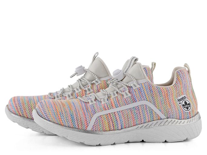 Tenisky zaujmou svou kombinací bílé a pestrobarevné palety odstínů, což je činí nepřehlédnutelnými. Uvnitř najdete příjemnou textilní podšívku a měkký jazyk ze softshellové textilie. Extra měkká stélka z paměťové pěny Memosoft® poskytuje maximální pohodlí při každém kroku.