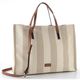 Prostorná dámská shopper kabelka od značky Rieker je ideálním společníkem pro jarní a letní dny. Její světlý béžový odstín s tmavšími pruhy a přírodními hnědými doplňky dodává kabelce elegantní vzhled, který snadno zkombinujete s různými outfity.