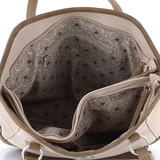 Dámská prostorná shopper kabelka v pěkné kombinaci béžové a hnědé barvy.