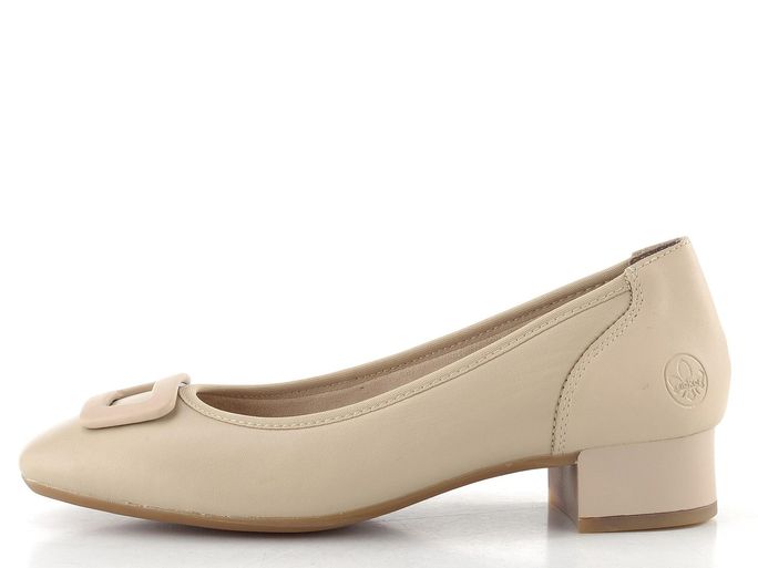 Komfortní dámské lodičky od značky Rieker jsou ideální volbou pro každodenní nošení i slavnostní příležitosti. Tyto béžové lodičky s ozdobnou sponou na špičce zaručují stylový vzhled a pohodlí po celý den. Širší střih "H" a kulatá špička jsou navrženy pro širší chodidlo, což oceníte při dlouhém nošení. Svrchní materiál z hladké kůže a syntetiky spolu s měkce polstrovanou podšívkou zajišťují příjemný pocit i při celodenním pohybu. Flexibilní latexová podešev s nízkým stabilním podpatkem dodává potřebnou podporu. Zvolte si kvalitu a pohodlí s těmito elegantními lodičkami, které se stanou nezbytnou součástí vašeho šatníku.