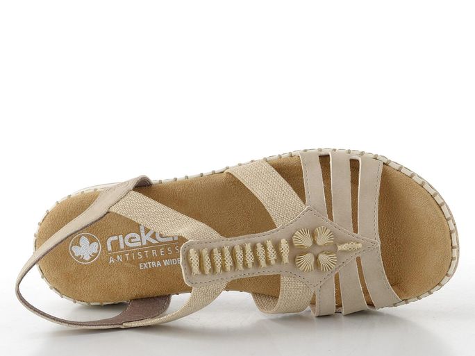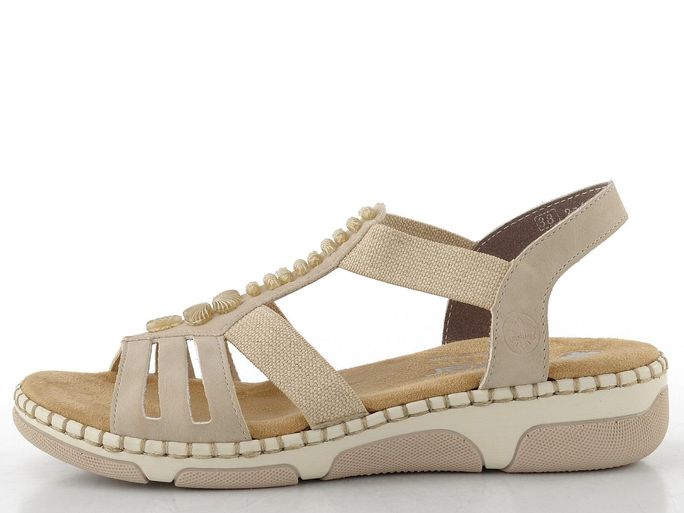 Dámské sandály od značky Rieker jsou ideální volbou pro jarní a letní dny. Tyto pohodlné sandály v béžové barvě přinášejí styl a komfort zároveň. S bižuterními kamínky ve tvaru rybiček a mušliček na nártu dodávají šmrnc každému outfitu.