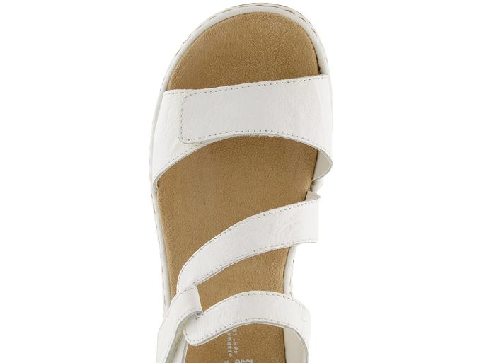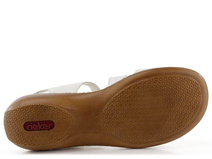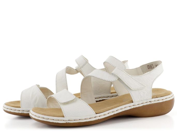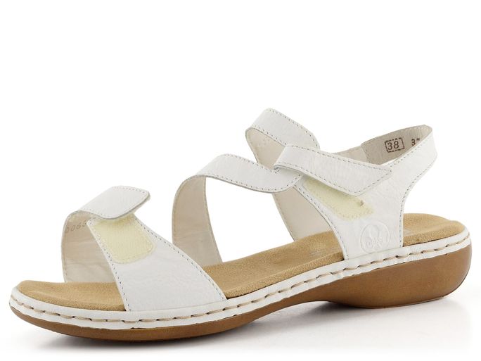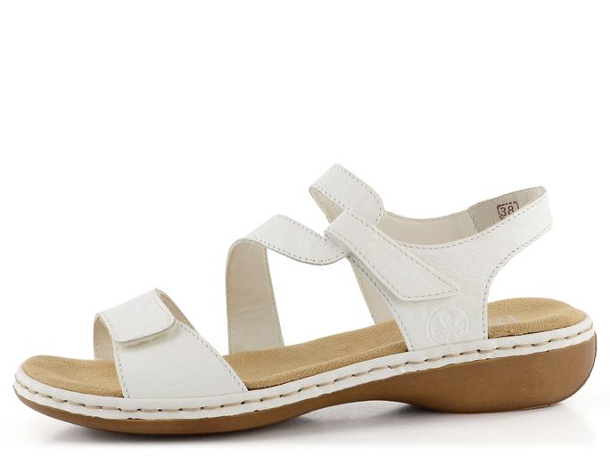 Dámské sandály značky Rieker jsou ideální volbou pro jarní a letní sezónu. Vyrobené z jemně strukturované a mačkané bílé kůže, tyto sandály nabízejí jednoduchý komfortní střih a flexibilní podešev s mírně zvýšenou patou o výšce 3,5 cm. Přední a postranní pásek jsou upínané na suchý zip, což zajišťuje snadné obouvání a pevné držení. Hladká syntetická podšívka a měkká stélka potažená broušenou textilií poskytují maximální pohodlí při chůzi. Tyto sandály jsou nejen stylové, ale také praktické a pohodlné, ideální pro každodenní nošení ve městě nebo na lehkou procházku. S šířkou G jsou vhodné pro širší chodidla a díky kvalitnímu zpracování značky Rieker zaručují dlouhou životnost.