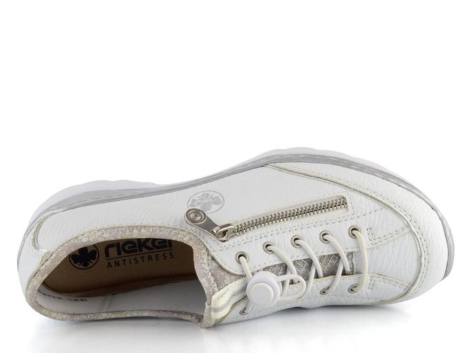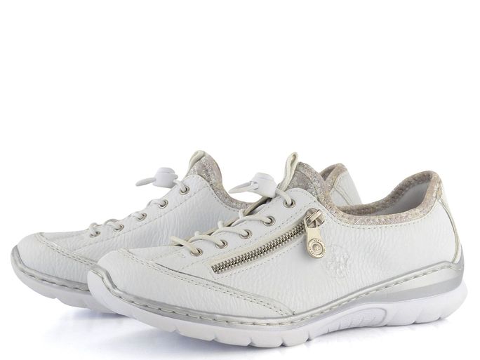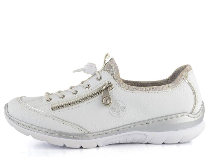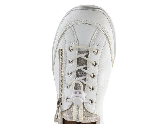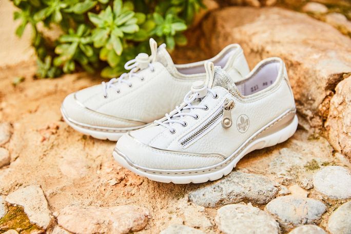 Sportovní dámské polobotky od značky Rieker jsou ideální volbou pro ty, kdo hledají pohodlí a styl v jednom. Díky prostornému nazouvacímu designu se snadno obouvají a poskytují komfort při každém kroku. Svršek kombinuje syntetický materiál se strukturou a pružnou softshellovou textilií, což zajišťuje flexibilitu a moderní vzhled. Elegantní bílá barva se stříbrnými doplňky dodává botám sofistikovaný nádech. Gumičkové šněrování s možností dotažení přispívá k individuálnímu přizpůsobení. Uvnitř najdete polstrovanou textilní podšívku a extra měkkou paměťovou pěnu ve stélce, která zaručuje pohodlí po celý den. Vyšší, flexibilní podešev a šitý výrobní způsob podtrhují kvalitu a odolnost těchto polobotek, ideálních pro suché prostředí.