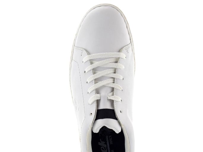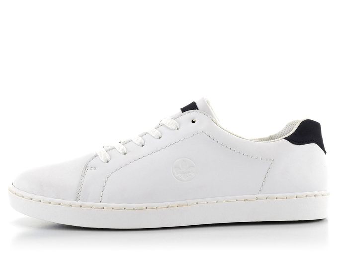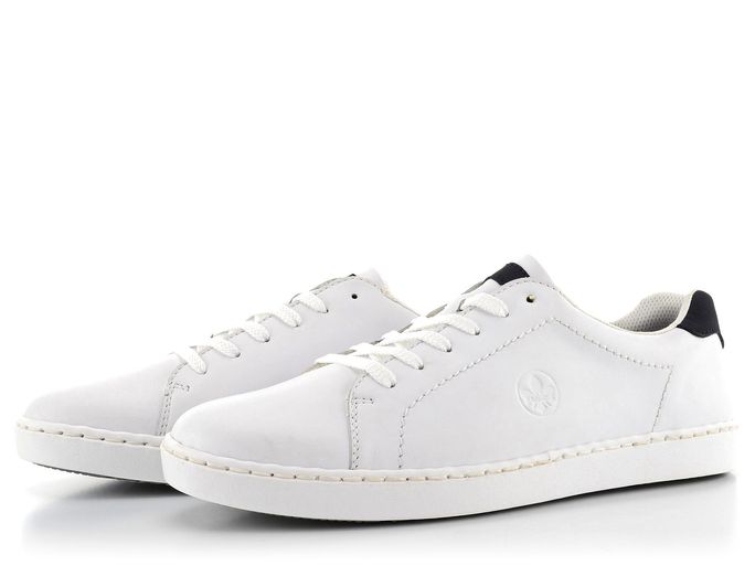 Klasický střih pánských tenisek, který nikdy nevyjde z módy, nyní v oblíbené bílé barvě od značky Rieker. Tyto tenisky jsou vyrobené z hladké kůže a mají šněrovací typ obuvi. Bílá barva je doplněna modrými prvky na jazyku a opatku, což dodává elegantní vzhled.