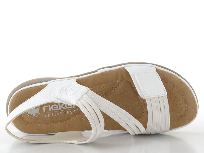 Díky upínání na suchý zip si můžete snadno nastavit ideální fit. Měkká a anatomicky tvarovaná stélka zajišťuje celodenní komfort, zatímco lehká podešev vás na noze téměř neobtěžuje. S výškou podpatku 3,5 cm jsou tyto sandály ideální volbou pro každou příležitost, ať už se chystáte na procházku do města nebo do kanceláře. Zvolte kvalitu a styl s sandály značky Rieker.