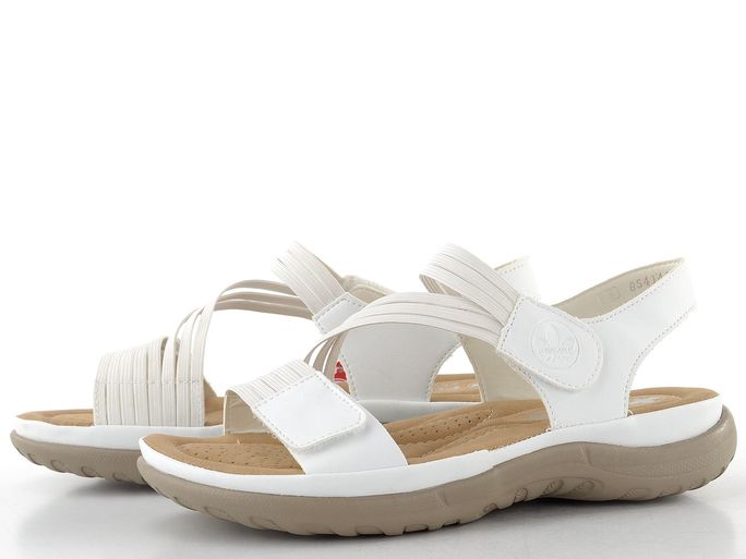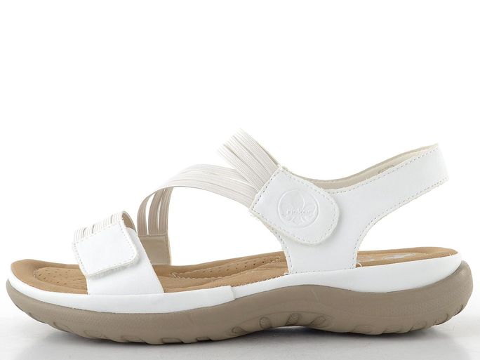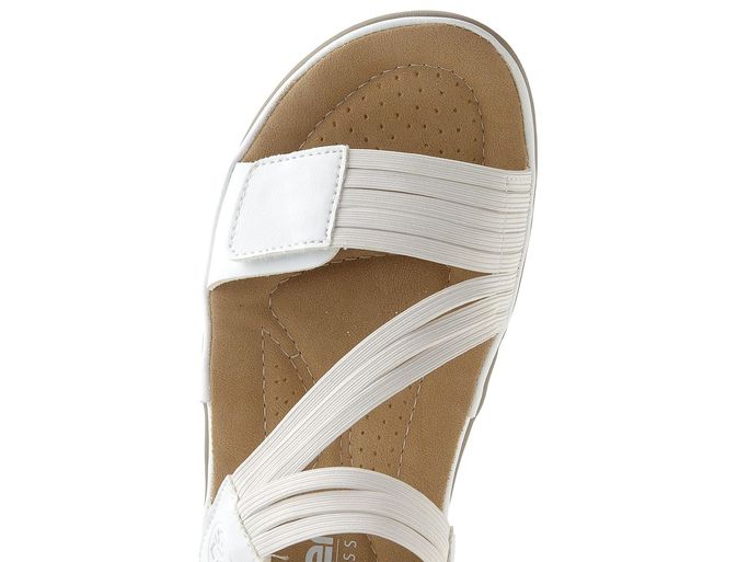 Představujeme lehkost a pohodlí v jednom balení s těmito bílými sandály značky Rieker. Ideální pro jarní a letní dny, tyto sandály kombinují moderní design s praktickými prvky. Svršek je vyroben z hladké syntetiky, která se snadno udržuje, a pružné pásečky se perfektně přizpůsobí tvaru vaší nohy.
