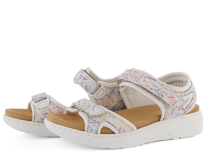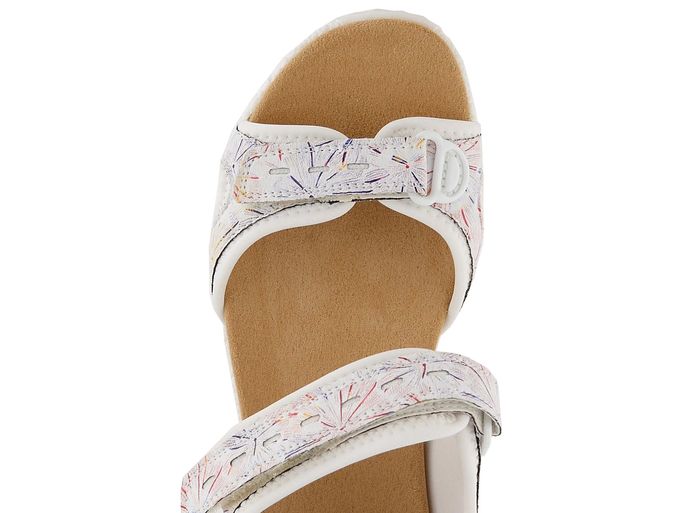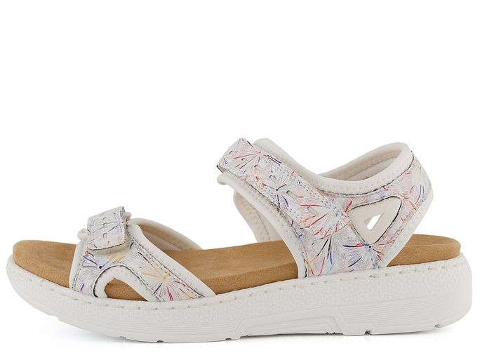 Vycházkové dámské sandály s vyjímatelnou stélkou a v oblíbené bílé barvě s decentním barevným potiskem.