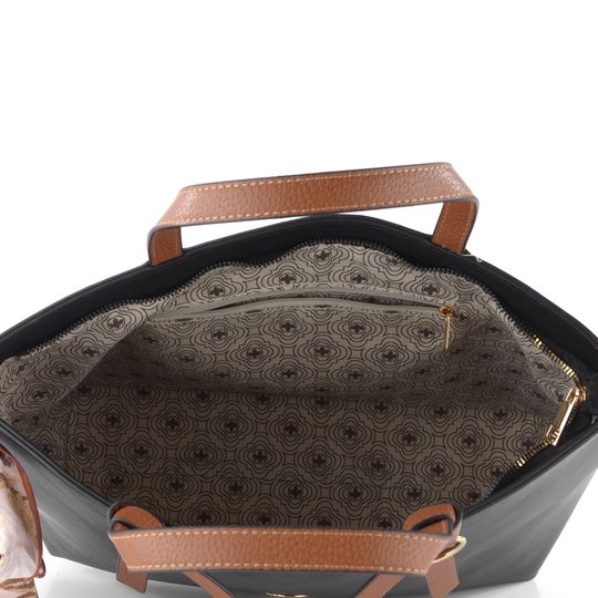 Elegantní dámská shopper kabelka od značky Rieker je ideální volbou pro každou ženu, která hledá prostorný a stylový doplněk. Kabelka je vyrobena z hladké syntetiky v černé barvě, která je doplněna oříškově hnědými madly a popruhem. Zlaté kování a nápadná, saténová stuha, kterou lze snadno sundat, dodávají kabelce nádech luxusu. Kabelka pohodlně pojme formát A4 a nabízí praktické vnitřní uspořádání: dvě otevřené kapsičky na mobil a jednu zipovou kapsu na cennosti. Pevná madla do ruky a nastavitelný ramenní popruh (67 - 124 cm) zajišťují pohodlné nošení. Rozměry kabelky jsou: horní šíře 38 cm, spodní šíře 33 cm, výška 26 cm, dno má hloubku 11 cm. Tento model je perfektní pro jarní a letní sezónu roku 2023.