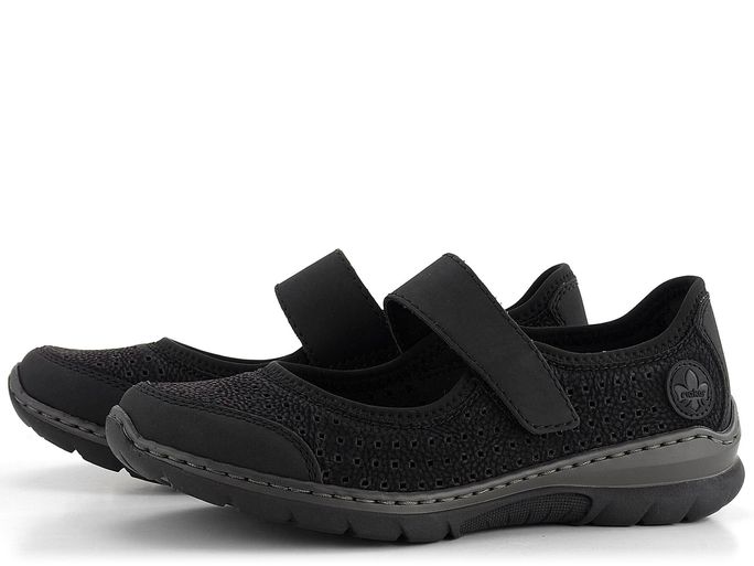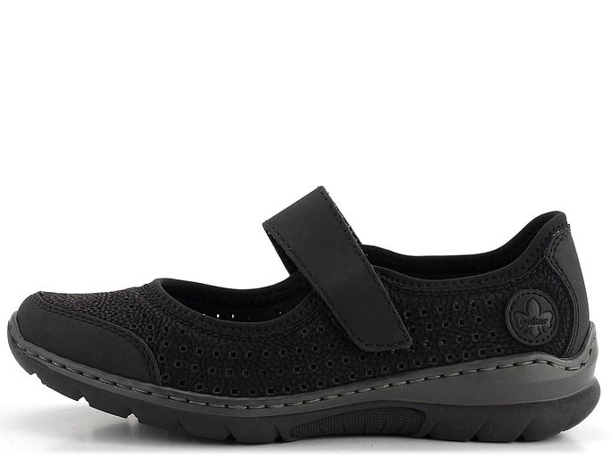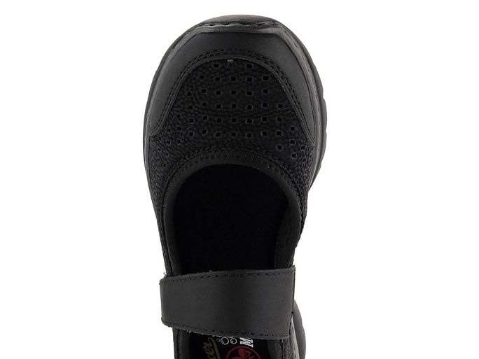 Hledáte pohodlné a stylové baleríny na jarní a letní sezónu? Dámské baleríny s páskem přes nárt od značky Rieker jsou ideální volbou. Tyto boty vynikají sportovním střihem a elegantní černou barvou. Svršek z matné syntetiky imituje strukturu kůže a díky vzdušné perforaci poskytuje maximální pohodlí. Funkční pásek na suchý zip zajišťuje snadné nazouvání a pevné držení na noze.