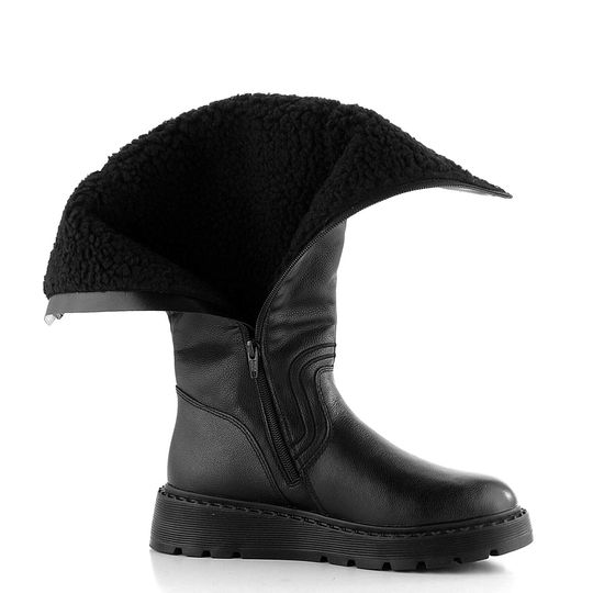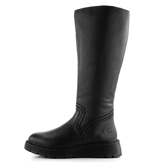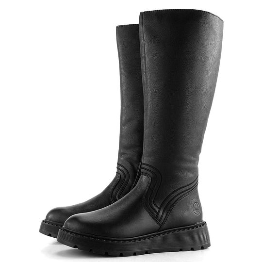 Komfortní dámské kozačky značky Rieker jsou ideální volbou pro podzimní a zimní sezónu. Díky prostorné kulaté špičce a svršku z jemně strukturované kůže a syntetiky poskytují maximální pohodlí po celý den. Vnitřní strana je vybavena zipem pro snadné obutí a pružnou vsadkou, což usnadňuje obouvání. Teplá podšívka z umělého beránku udrží vaše nohy v teple i v chladných dnech. Vyjímatelná stélka potažená filcem zajišťuje měkký došlap. Kozačky mají vyšší platformu s malým klínkem a hrubým vzorkem na podešvi, což zajišťuje stabilitu a pohodlí při chůzi. Výška kozačky je 37 cm, což je ideální pro plnější tvar lýtek (XL). Horní vnější obvod měří 43 cm (velikost 38). Tyto kozačky jsou skvělou volbou pro každodenní nošení ve městě i na lehké procházky venku.