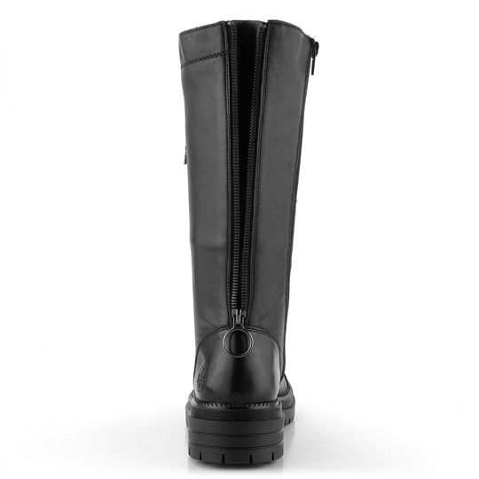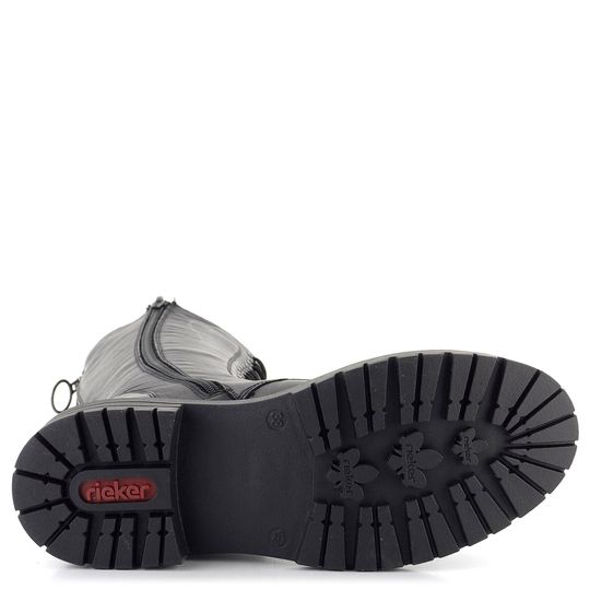 Dámské zimní kožené polokozačky značky Rieker jsou ideální volbou pro podzimní a zimní sezónu. Tyto elegantní boty v černé barvě kombinují hladkou kůži a syntetiku, což zajišťuje jejich trvanlivost a stylový vzhled. Díky šněrování po celé délce přední strany si můžete nastavit optimální šíři, zatímco zip na vnitřní straně usnadňuje obutí. Zadní zip skrývá vsadku, která umožňuje rozšíření obvodu o 2-3 cm.