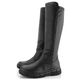 Dámské kozačky značky Rieker X3451-01 představují ideální volbu pro podzimní a zimní sezónu. Tyto boty jsou navrženy s ohledem na pohodlí a styl. Prostorná kulatá špička a pružná zadní lýtková část se přizpůsobí tvaru a šířce lýtka, což je ideální pro standardní až plnější typ lýtek. Svršek je vyroben z kombinace kůže a syntetiky, což zajišťuje trvanlivost a elegantní vzhled. Vyteplená podšívka udrží vaše nohy v teple, zatímco filcová stélka přidává na komfortu. Kozačky mají zip na vnitřní straně pro snadné obutí a bytelnou podešev s hrubším vzorkem, která poskytuje stabilitu na různých površích. Výška kozaček je 37 cm, přičemž přední díl je o 3 cm vyšší. Horní obvod kozačky měří 38 cm pro velikost 38, s možností rozšíření až o 3 cm díky pružné části. Výška podpatku je 4 cm, což zajišťuje pohodlné nošení po celý den. Tyto kozačky jsou skvělou volbou pro každodenní nošení i formálnější příležitosti.