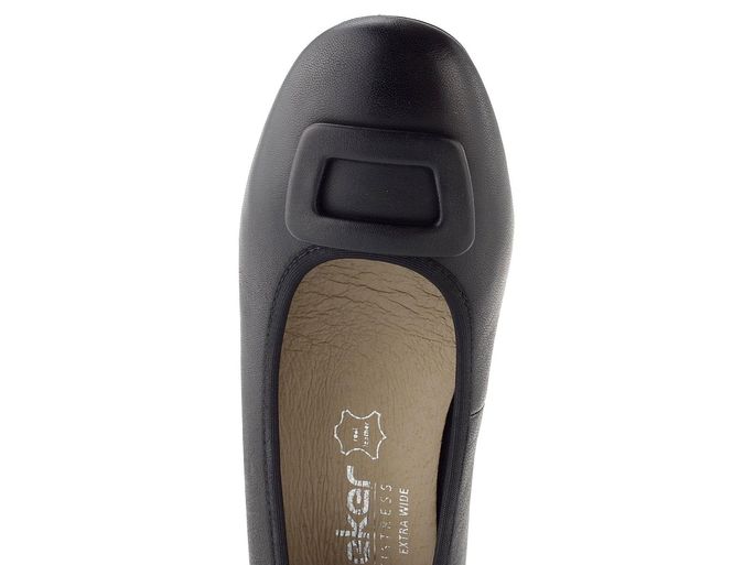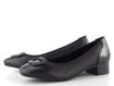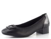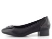 Širší dámské lodičky z hladké kůže v černé barvě, s ozdobnou sponou na špičce a nízkým podpatkem.