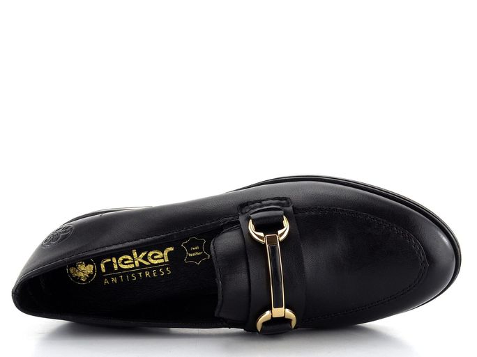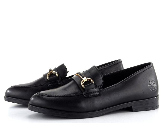 Elegantní a komfortní mokasíny od značky Rieker jsou ideální volbou pro každou ženu hledající styl a pohodlí. Tyto černé mokasíny z hladké kůže nabízejí pohodlný střih s užší kulatou špičkou, což zaručuje pohodlí během celého dne. Nárt je ozdoben jemným kováním ve zlaté barvě, což dodává botám nádech luxusu. Pruženky na obou stranách nártu usnadňují obutí a zajišťují příjemnou chůzi. Uvnitř najdete textilní podšívku podloženou slabým molitanem a extra měkkou stélku potaženou hladkou kůží. Latexová podešev s jemným vzorkem a nízkým podpatečkem (2,5 cm) poskytuje stabilitu a komfort. Mokasíny jsou vyrobeny lepeným způsobem, což zaručuje jejich trvanlivost. Tyto boty jsou skvělou volbou pro podzimní a zimní sezónu 2024/25.