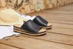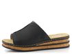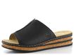Dámské černé pantofle se širokým nártovým páskem a vyšší platformou s klínkem.