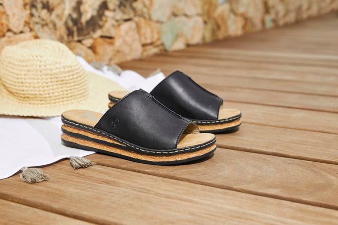 Hledáte pohodlné a stylové pantofle na léto? Dámské pantofle na klínku od značky Rieker jsou ideální volbou. Tyto černé páskové boty jsou navrženy s ohledem na komfort a moderní design. S vrchovým dílcem z hladké syntetiky a podšívkou kombinující textilii a syntetiku poskytují příjemný pocit při nošení. Extra měkká stélka potažená broušenou textilií zajišťuje maximální pohodlí. Klínek vysoký 4,2 cm dodává elegantní vzhled a zároveň podporuje stabilitu při chůzi. Ozdobný podélný šev a malý prostřih na nártu dodávají pantoflím unikátní vzhled. Tyto pantofle jsou ideální volbou pro jaro a léto.