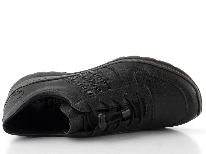 Dámské prozouvací polobotky značky Rieker L32F3-00 jsou ideální volbou pro jarní a letní dny. S kulatou špičkou a gumičkovým šněrováním s možností dotažení se snadno přizpůsobí vaší noze, což zajišťuje maximální pohodlí při každém kroku. Vyrobené z povrstvené kůže v kombinaci se syntetikou, tyto černé boty nejen skvěle vypadají, ale také poskytují dostatečnou flexibilitu díky syntetické podešvi.