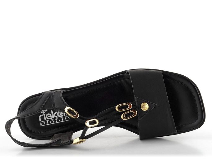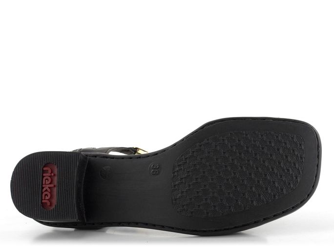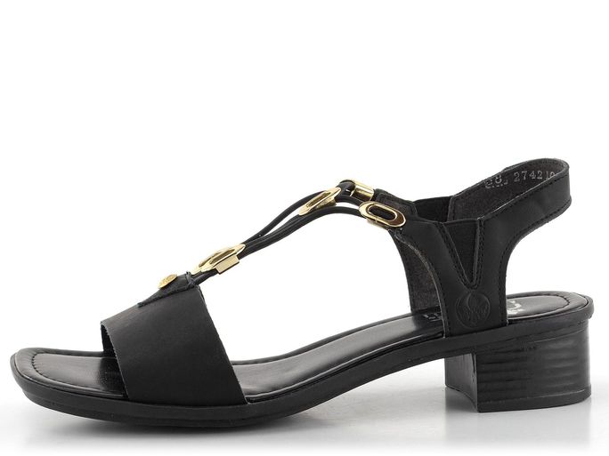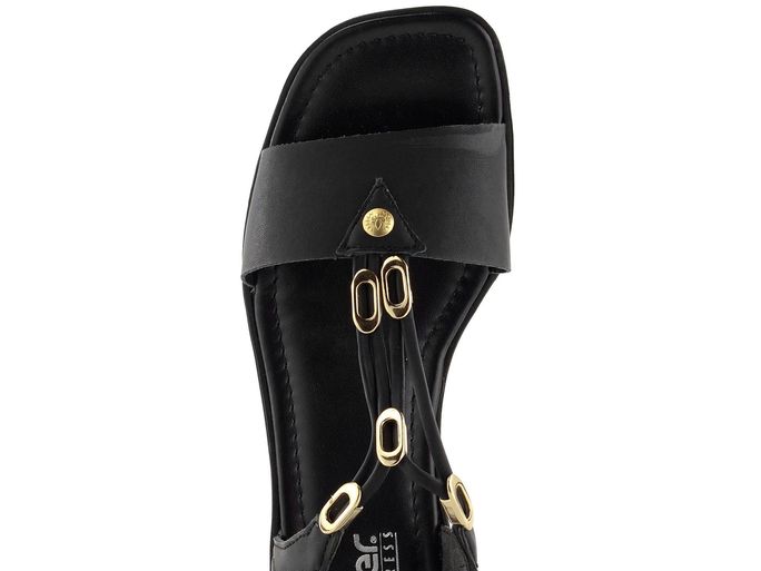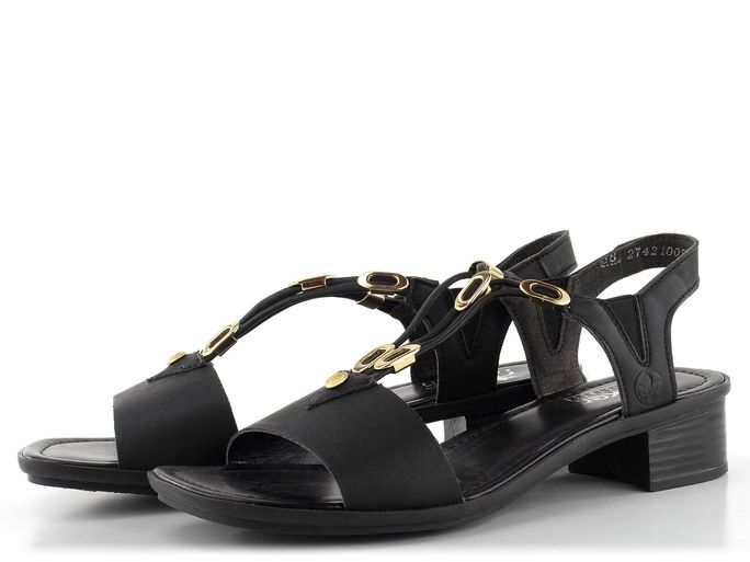 Elegantní černé dámské sandály od značky Rieker jsou ideální volbou pro jarní a letní sezónu. Vyrobeny z hladké syntetiky, tyto sandály nabízejí nejen styl, ale i pohodlí. S nízkým podpatkem o výšce 3,8 cm a širokou podešví jsou vhodné pro každodenní nošení i formálnější příležitosti.