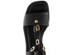 Dámské sandálky v černé barvě, se zdobeným nártovým páskem a pohodlným podpatkem.