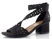Dámské sandály značky Rieker v elegantní černé barvě jsou ideální volbou pro jarní a letní dny. Jejich kulatá špička a široké pásky s prořezávaným vzorem zajišťují nejen stylový vzhled, ale také pohodlí při nošení. Svršek je vyroben z textilie posázené drobnými broušenými kamínky, které dodávají sandálům nádech elegance. Kotníkový pásek se snadno upíná na suchý zip, což usnadňuje obouvání. Příjemně měkká stélka a syntetická podešev s 5 cm vysokým podpatkem zajišťují komfort i při celodenním nošení. Tyto sandály jsou skvělou volbou pro každou příležitost, ať už se chystáte do města nebo na formální akci.