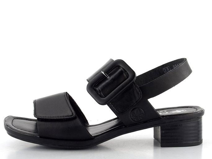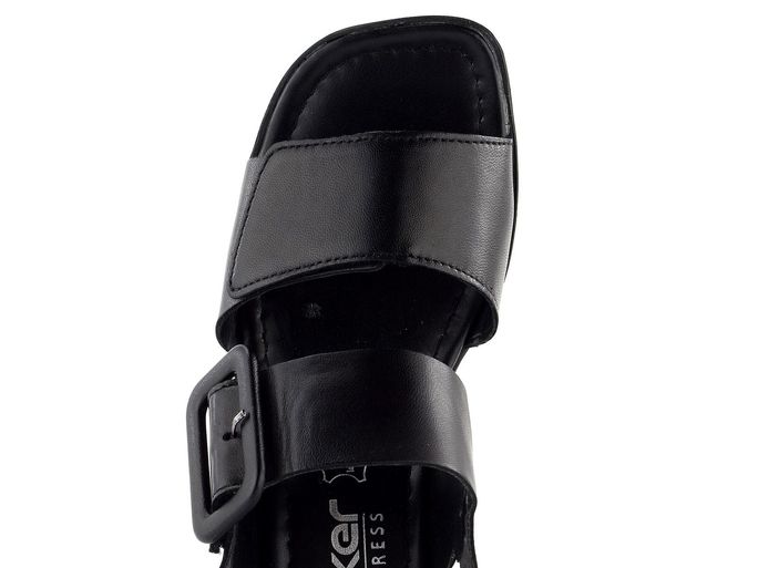 Dámské sandály od značky Rieker představují dokonalou kombinaci stylu a komfortu pro jarní a letní sezónu. Tyto páskové boty v elegantní černé barvě jsou vyrobeny z kvalitní hladké kůže, která se přizpůsobí tvaru vaší nohy. Široké pásky s nastavitelným suchým zipem a dekorativní sponou zajišťují, že sandály padnou jako ulité. Podšívka ze syntetiky a příjemně měkká stélka dodávají pocit pohodlí při každém kroku. Lehká syntetická podešev se širokým, stabilním podpatkem o výšce 3,8 cm poskytuje jistotu a stabilitu. Sandály jsou ideální volbou pro ženy, které hledají kvalitní a pohodlnou obuv pro každodenní nošení.