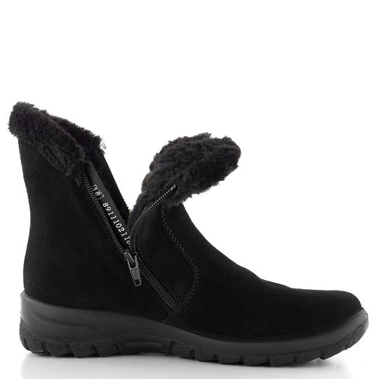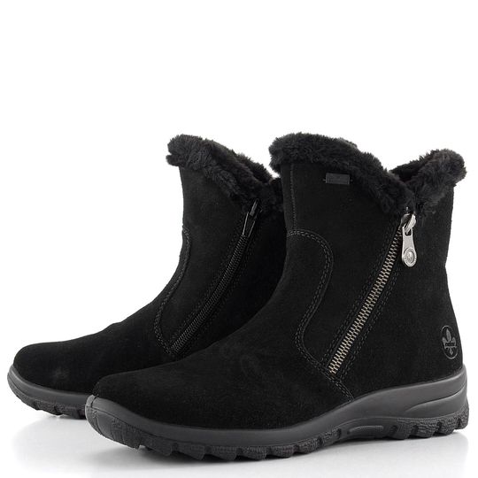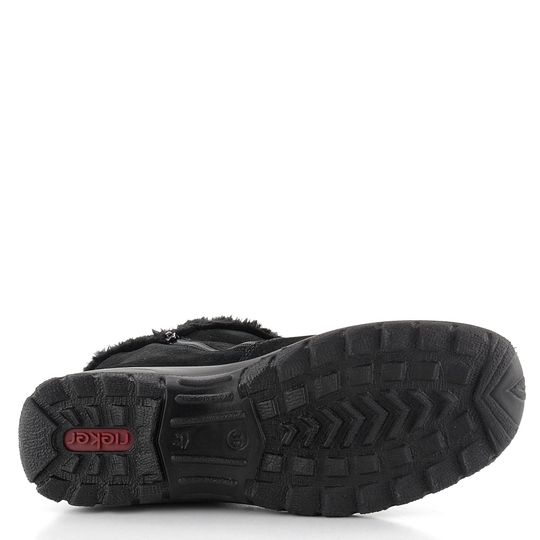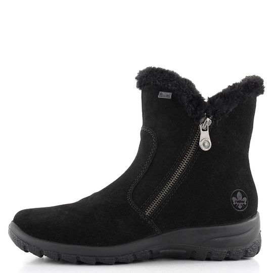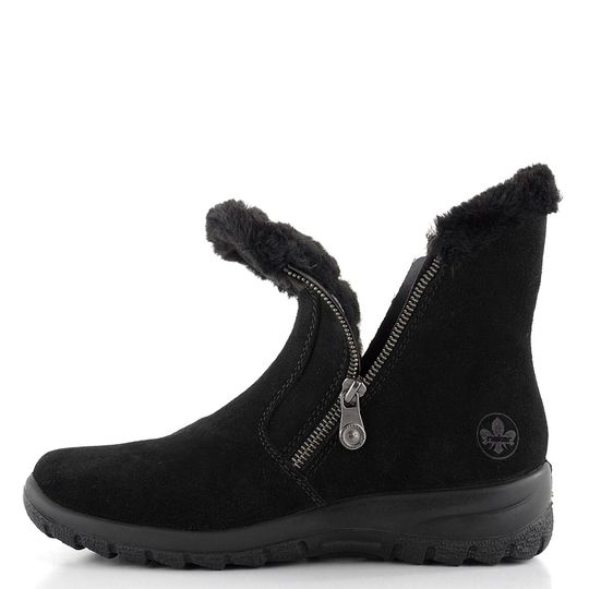 Za chladných zimních dnů oceníte stylový dámský kotník od značky Rieker, který kombinuje funkčnost a eleganci. Boty mají svršek ze semišové kůže v černé barvě a horní lem z hebké textilní kožešinky. Díky funkčnímu zipu na vnitřní i vnější straně je obouvání snadné a rychlé. Vnitřní podšívka z pravé ovčí vlny zajišťuje teplo a komfort, zatímco měkká stélka potažená filcem přidává na pohodlí. Obuv je vybavena vodoodpudivou membránou riekerTEX®, která vás ochrání před vlhkostí. Ohebná syntetická podešev s hrubým vzorkem poskytuje stabilitu a bezpečnost na kluzkém povrchu. Výška podpatku je 3,5 cm, což je ideální pro každodenní nošení. Tento model je perfektní volbou pro ženy, které hledají kombinaci stylu, kvality a funkčnosti.
