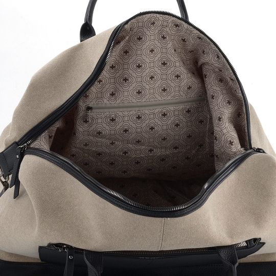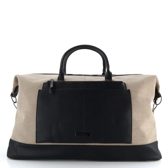 Prostorná plátěná kabela na cesty od značky Rieker je ideální volbou pro stylové víkendové cestování. Je vyrobena z pevného plátna v kombinaci se strukturovanou syntetikou, což zaručuje její dlouhou životnost. Kabelu zdobí béžová barva s černými doplňky a kováním v tmavě šedé barvě. Na přední straně najdete praktickou zipovou kapsu a otevřenou přihrádku. Hlavní prostor je uzavíratelný na dvoucestný zip. Vnitřní výbava zahrnuje dvě otevřené kapsičky na mobil a jednu zipovou kapsu na cennosti. Pevná madla do ruky mají středovou vzdálenost od hrany kabelky cca 15 cm. Nastavitelný ramenní popruh (67 - 124 cm) lze odepnout. Rozměry kabely: šíře 55 cm, výška 37 cm, dno má hloubku 26 cm a je opatřeno kovovými opěrkami. Tato kabela je součástí kolekce Jaro/Léto 2024.