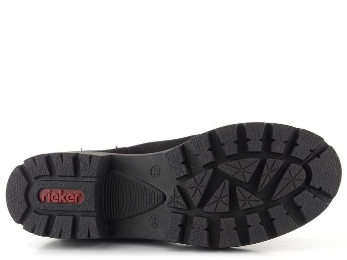 Dámský módní kotník od značky Rieker je ideální volbou pro podzimní a zimní sezónu. Tento stylový model v černé barvě zaujme svou dominantní latexovou podešví s designovou linkou a výrazným vzorkem. Boty mají prostornou, kulatou špičku a svršek z textilního materiálu (imitace semiše), který je příjemný na dotek.