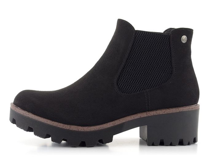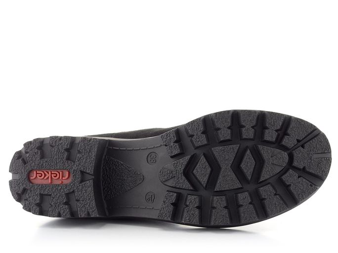 Dámský zimní kotník značky Rieker je ideální volbou pro chladné podzimní a zimní dny. Tento model v černé barvě se vyznačuje prostornou, kulatou špičkou a svrškem z textilního materiálu, který imituje semiš. Díky širokým pružinám po obou stranách je obutí snadné a pohodlné. Uvnitř naleznete teplou a hebkou střižní podšívku, která zajistí komfort i během mrazivých dnů. Stélka je potažena filcem, což přispívá k celkovému pohodlí. Dominantní latexová podešev s designovou linkou a výrazným vzorkem poskytuje stabilitu a bezpečnost na kluzkém povrchu. Výška podpatku je 5 cm a výška kotníku 10 cm (bez podpatku). Tento model je vyroben lepeným výrobním způsobem, což zaručuje jeho trvanlivost. Vyberte si kvalitu a styl s kotníkovými botami od značky Rieker.