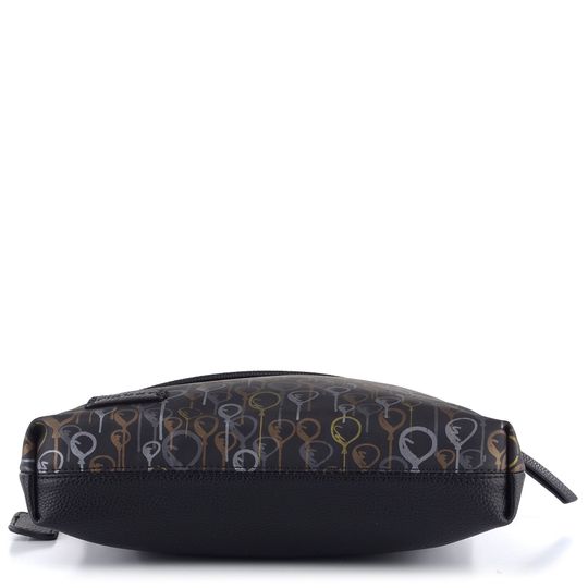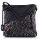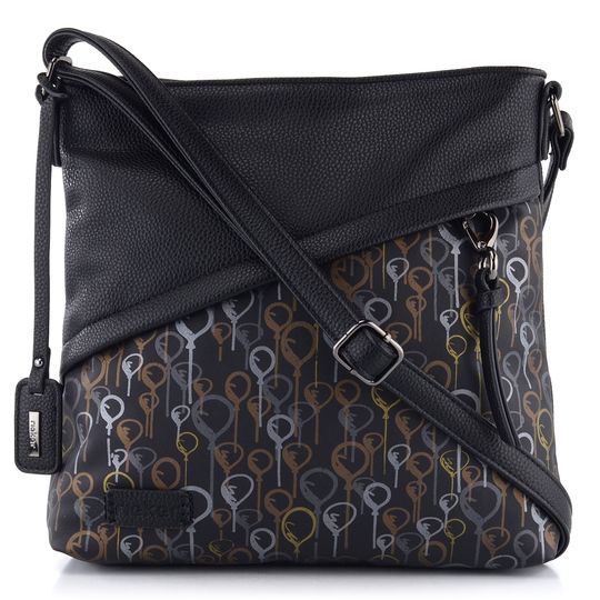 Trendová dámská crossbody kabelka v černé barvě, se šikmým předním zipem a potiskem.