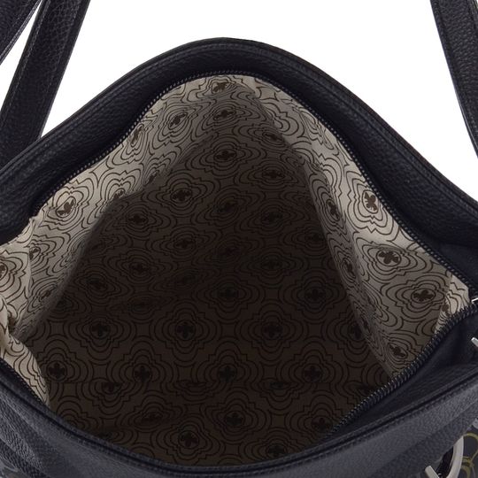 Stylová a módní crossbody kabelka od značky Rieker v elegantní černé barvě je ideálním doplňkem pro podzimní a zimní sezónu. Vyrobena ze syntetického materiálu s jemnou strukturou a hladkým povrchem s potiskem, tato kabelka zaujme svým metalickým potiskem party balonků ve stříbrné, zlaté a bronzové barvě. Kabelka má praktický menší střih, který se skvěle hodí pro každodenní nošení.