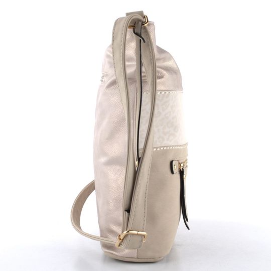Představujeme módní dámskou crossbody kabelku od značky Rieker, která kombinuje eleganci a praktičnost. Tato kabelka je ideálním doplňkem pro jarní a letní sezónu díky své sladěné trojbarevné kombinaci béžové, smetanové a metalické barvy. Vyrobena z kvalitní syntetiky, nabízí nejen styl, ale i odolnost. Kabelka je navržena tak, aby ji bylo možno nosit klasicky nebo křížem přes rameno, což z ní činí všestranný doplněk pro každodenní použití. Díky variabilní délce ramenního pásku (65-125 cm) se přizpůsobí vašim potřebám. Praktické uspořádání vnitřního prostoru s několika kapsami zajistí, že vše důležité budete mít vždy po ruce.