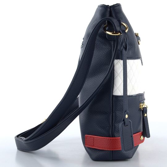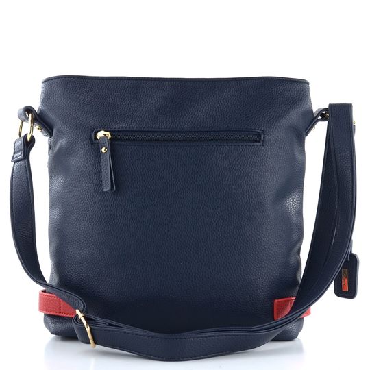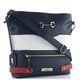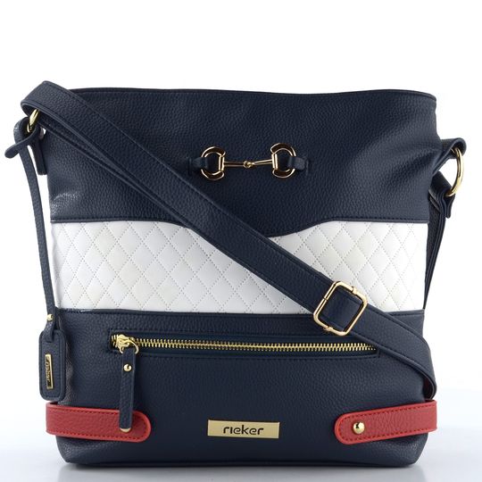 Zažijte styl a praktičnost s crossbody kabelkou od značky Rieker. Tato módní a trendová kabelka vyniká svým barevným provedením v tmavě modré a bílé s červenými detaily, což ji činí ideálním doplňkem pro jarní a letní sezónu. Kabelka je vyrobena ze strukturované a vzorované syntetiky, což zaručuje nejen atraktivní vzhled, ale také odolnost. Praktický a prostorný střih nabízí dvě zipové přihrádky a další kapsičky pro uspořádání vašich věcí. Ramenní pásek s délkovou regulací umožňuje pohodlné nošení jako crossbody. Celkové rozměry kabelky jsou: horní šíře 28 cm, výška 29 cm a hloubka dna 5,5 cm. Elegantní zlaté kování a jemný vzor na přední straně dodávají kabelce sofistikovaný vzhled.