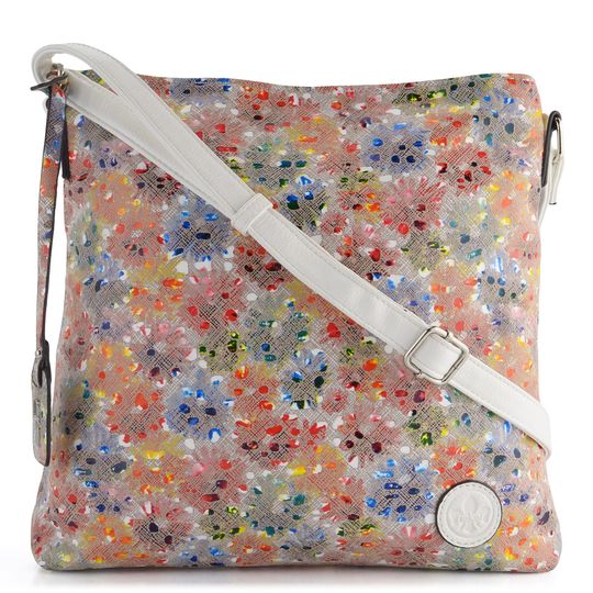 Originální dámská crossbody kabelka s pestrobarevným potiskem.