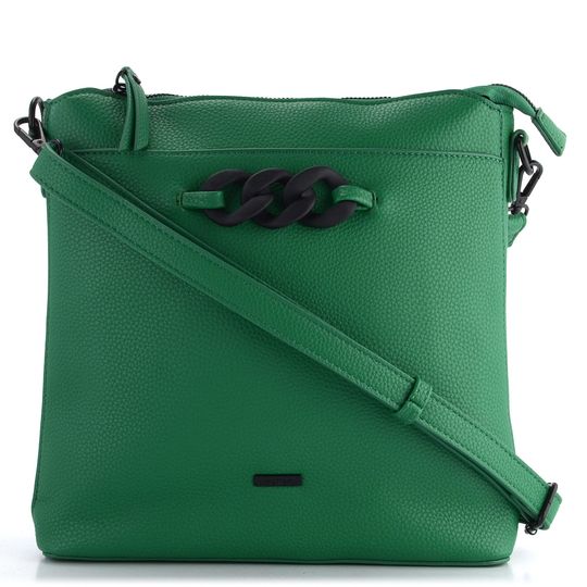 Dámská crossbody kabelka od značky Rieker vyniká svou sytou zelenou barvou a jednoduchým střihem, který je ideální pro každodenní použití. Kabelka je vyrobena ze strukturované syntetiky, což zajišťuje její odolnost a snadnou údržbu. Na přední straně najdete ozdobný plastový řetízek v matném provedení, který dodává kabelce moderní vzhled.
