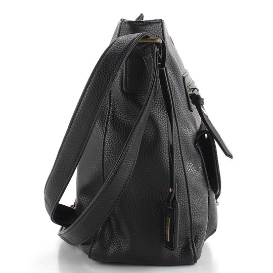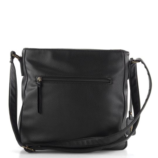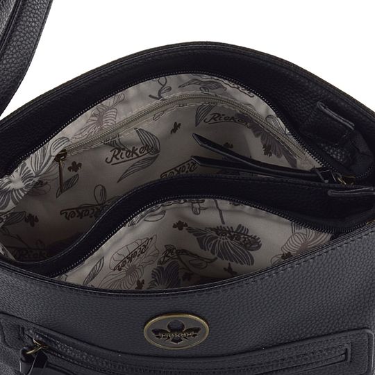 Elegantní a praktická dámská crossbody kabelka od značky Rieker je ideálním doplňkem pro podzimní a zimní sezónu. Kabelka vyniká prostorným střihem a je vyrobena z poddajné strukturované syntetiky. Její černá barva s kovovými doplňky ve staromosazné barvě dodává kabelce sofistikovaný vzhled.