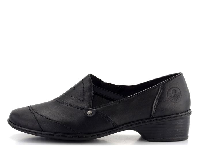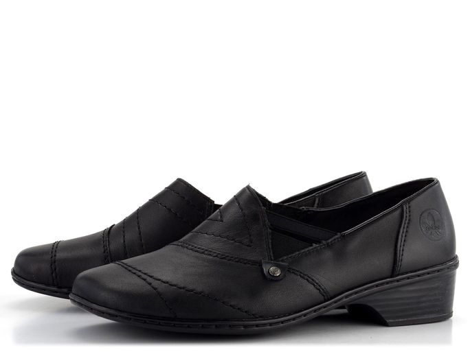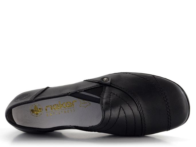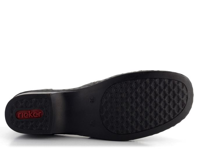 Dámské polobotky značky Rieker jsou ideální volbou pro ty, kdo hledají pohodlí a styl v jednom. Tyto boty jsou vyrobeny z hladké kůže a mají prostornou kulatou špičku, což je činí vhodnými pro širší typ chodidla. Černá barva a bohaté ozdobné štepování dodávají botám elegantní vzhled.