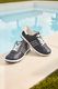 Dámské flexibilní tenisky na šněrování v tmavě modré barvě a širším střihovém provedení.