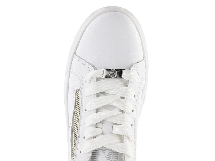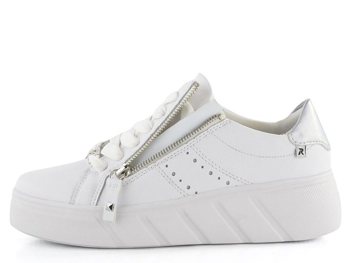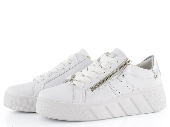 Zažijte spojení stylu a pohodlí s dámskými teniskami od značky Rieker. Tyto tenisky jsou ideální volbou pro ženy, které hledají obuv nejen pro volný čas, ale také pro každodenní nošení. Svršek z povrstvené kůže v bílé barvě s elegantním metalickým detailem dodá vašemu outfitu šmrnc. Funkční postranní zip usnadňuje obouvání, zatímco klasické šněrování s širokými tkaničkami zajišťuje pevné držení. Uvnitř najdete textilní podšívku a měkkou vyjímatelnou vložku s podporou klenby. Lehká vysoká platforma dodává teniskám moderní vzhled a komfort při chůzi. Připravte se na jaro a léto s obuví, která kombinuje moderní design a maximální pohodlí.