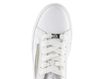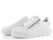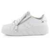 Dámské bílé kožené tenisky na vysoké módní platformě, s postranním zipem a metalickým patním dílem.