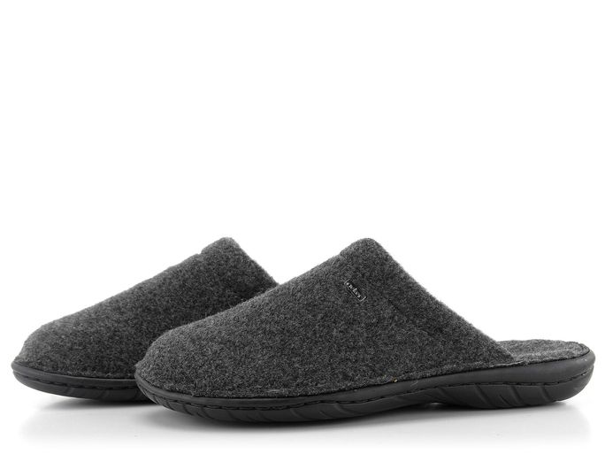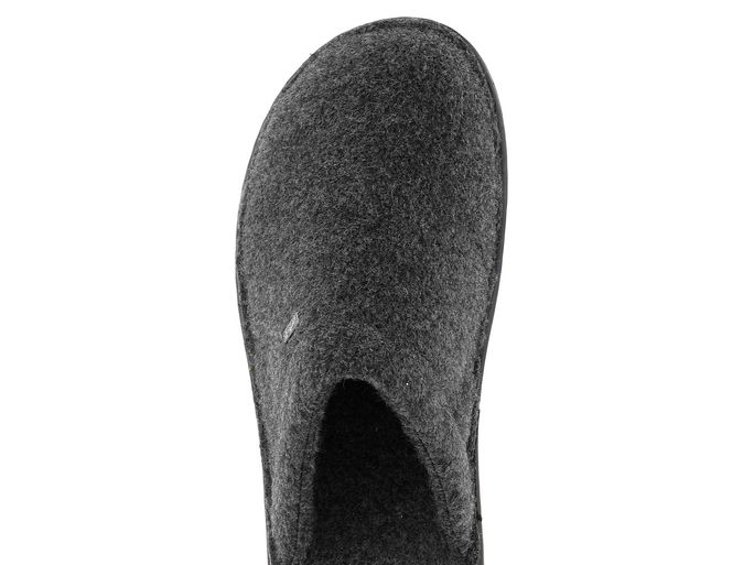 Pánské teplé domácí pantofle s plnou špičkou a v tmavě šedé barvě.