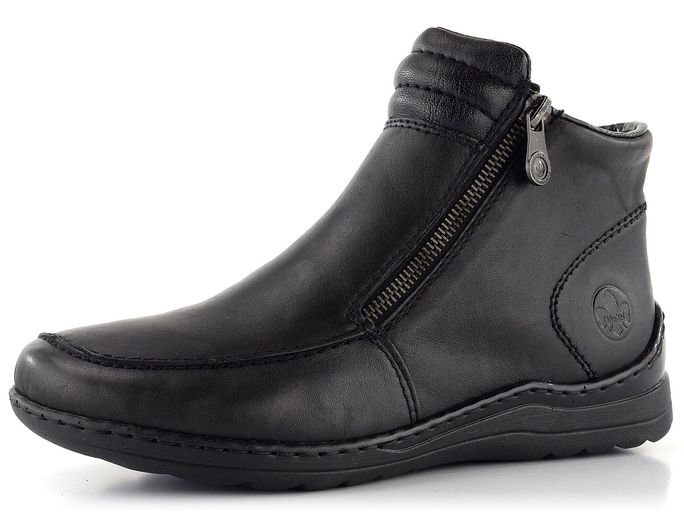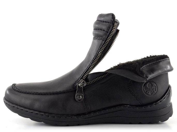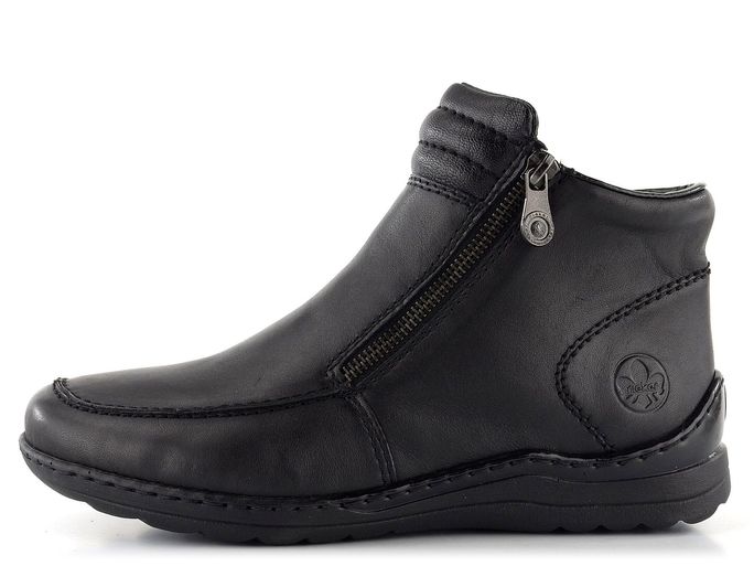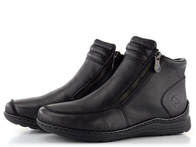 Dámský kotník značky Rieker je ideální volbou pro chladné podzimní a zimní dny. Díky dvěma zipům po obou stranách je nazouvání rychlé a pohodlné. Boty jsou vyrobeny z černé hladké kůže a mají ozdobný vyvýšený šev na špičce, což dodává elegantní vzhled.