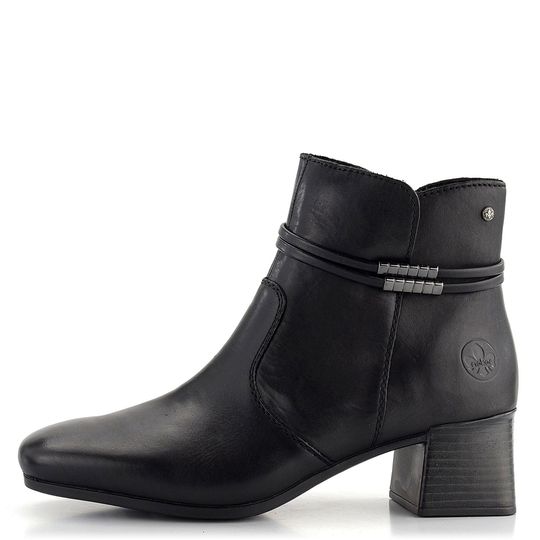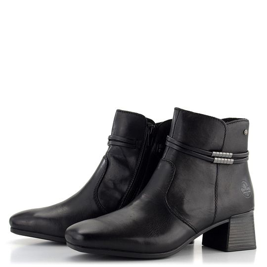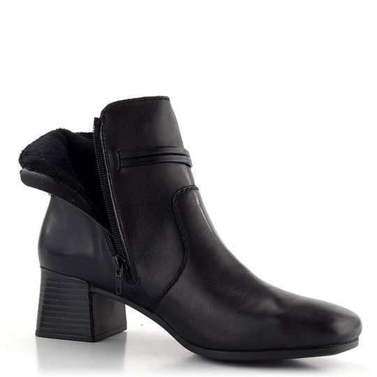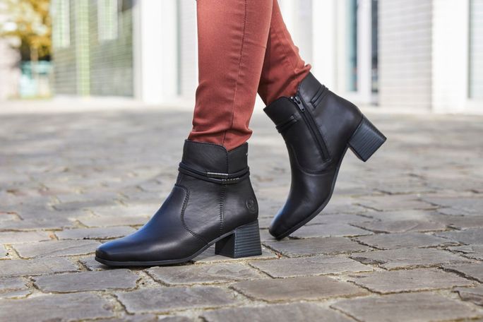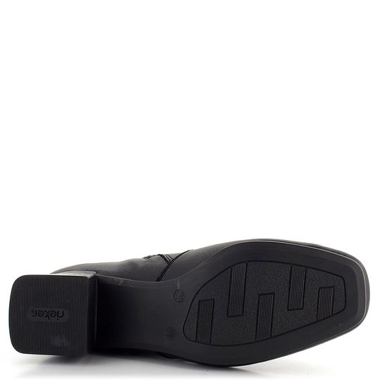 Dámská kotníčková obuv značky Rieker je ideální volbou pro podzimní a zimní sezónu. Tento elegantní model nabízí prostorný střih s karé špičkou a je vyroben z hladké kůže v černé barvě. Na vnější straně najdete skrytě ozdobné pásky, které dodávají botám sofistikovaný vzhled. Pro snadné obutí je na vnitřní straně umístěn praktický zip. Uvnitř boty se nachází podšívka z hebkého textilního vlasu a extra měkká stélka potažená filcem, která zaručuje maximální pohodlí. Flexibilní podešev se středně vysokým širokým podpatkem (5 cm) poskytuje stabilitu a komfort při chůzi. Tyto boty jsou vyrobeny lepeným výrobním způsobem, což zaručuje jejich trvanlivost a kvalitu. Ideální volba pro každodenní nošení i formálnější příležitosti.
