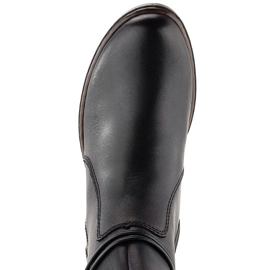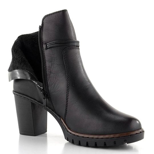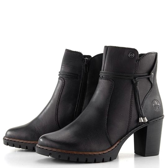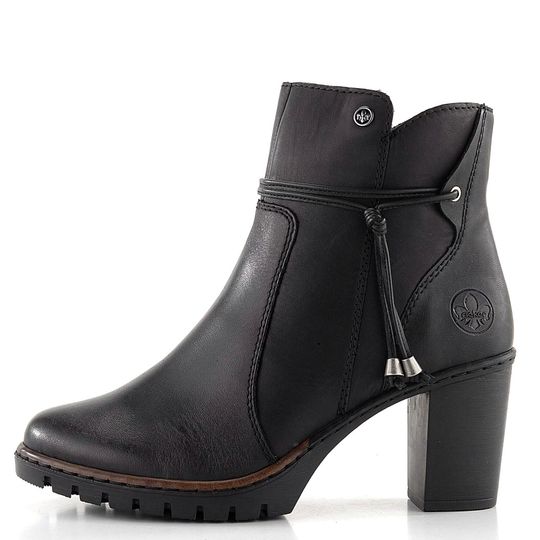 Elegantní dámské kotníkové boty od značky Rieker přinášejí styl a pohodlí do podzimních a zimních dnů. Tyto boty se pyšní kombinací hladké kůže a syntetiky, která zajišťuje nejen atraktivní vzhled, ale i odolnost. Černá barva a ozdobné šňůrky na vnějším boku dodávají botám šmrnc, zatímco praktický zip na vnitřní straně usnadňuje obouvání.